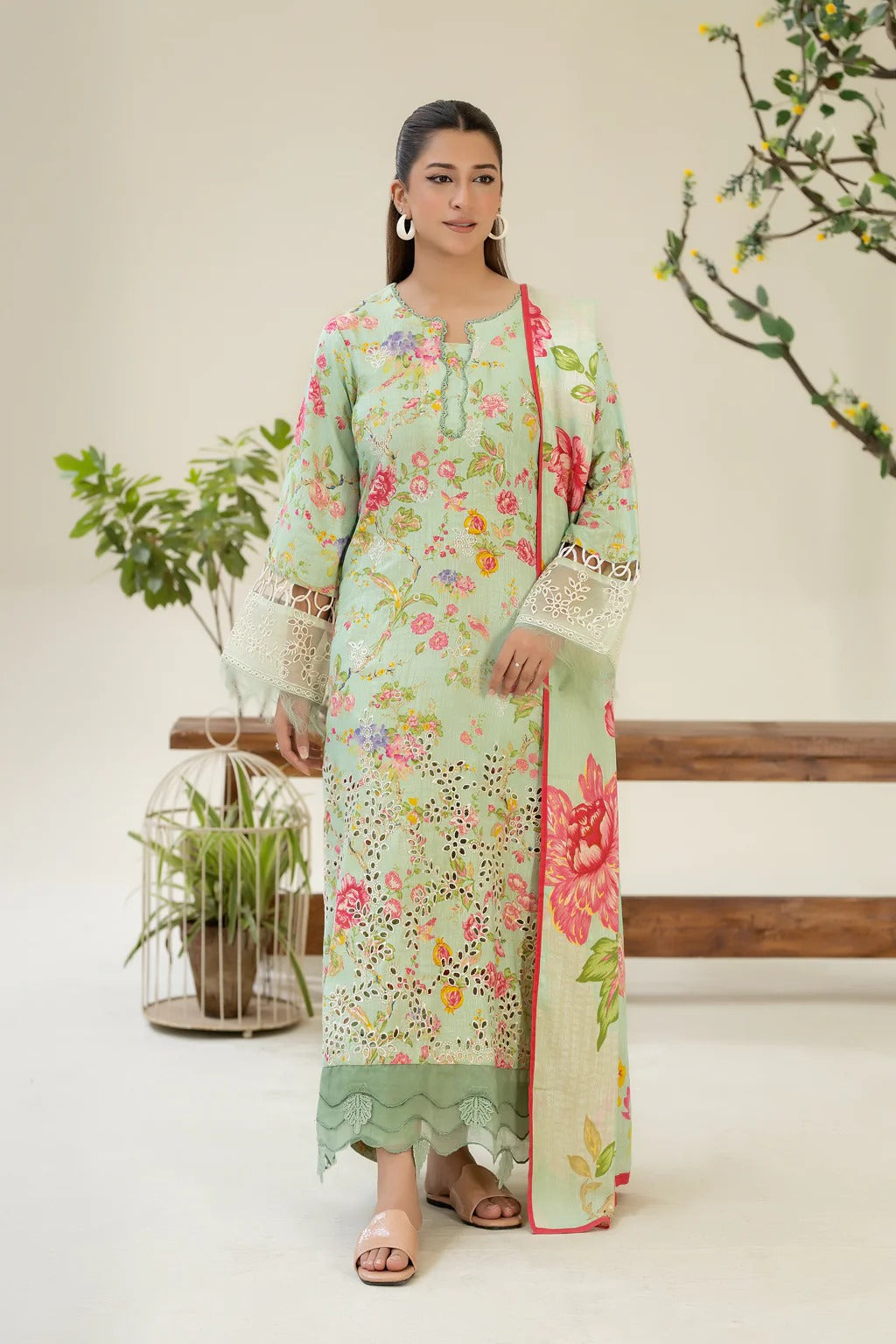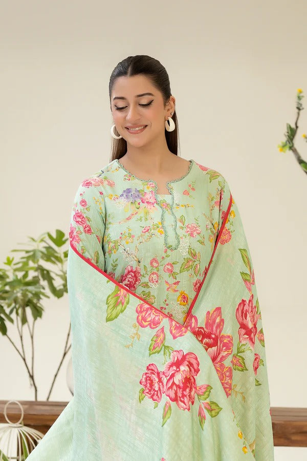 EMBROIDERED+PRINTED STAPPLE JACQUARD WITH PRINTED SHAWL + PRINTED TROUSER