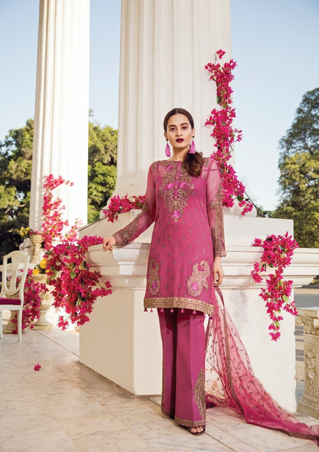 Embroidered organza border for front and back: 2 yards