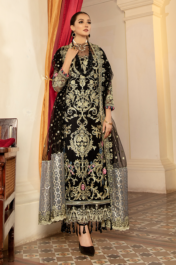 Embroidered net with lurex organza for dupatta: