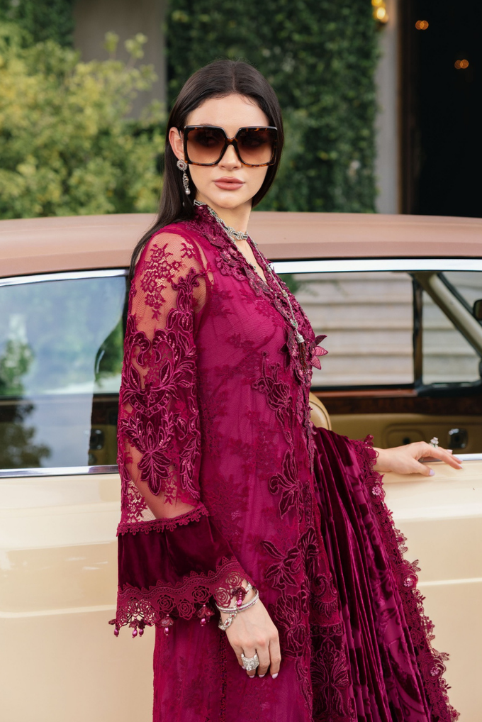 Embroidered Chantilly Front Panels R+L With Velvet Applique, 3D Flowers & Pearls