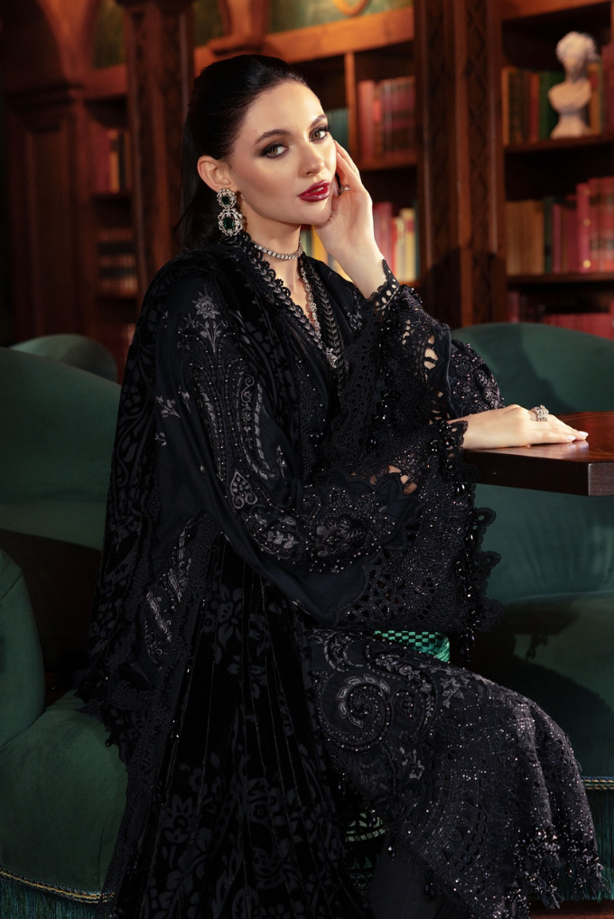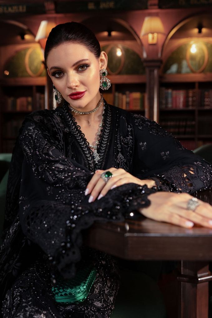Embroidered Linen Side Panel R+L With Velvet Applique & Pearls