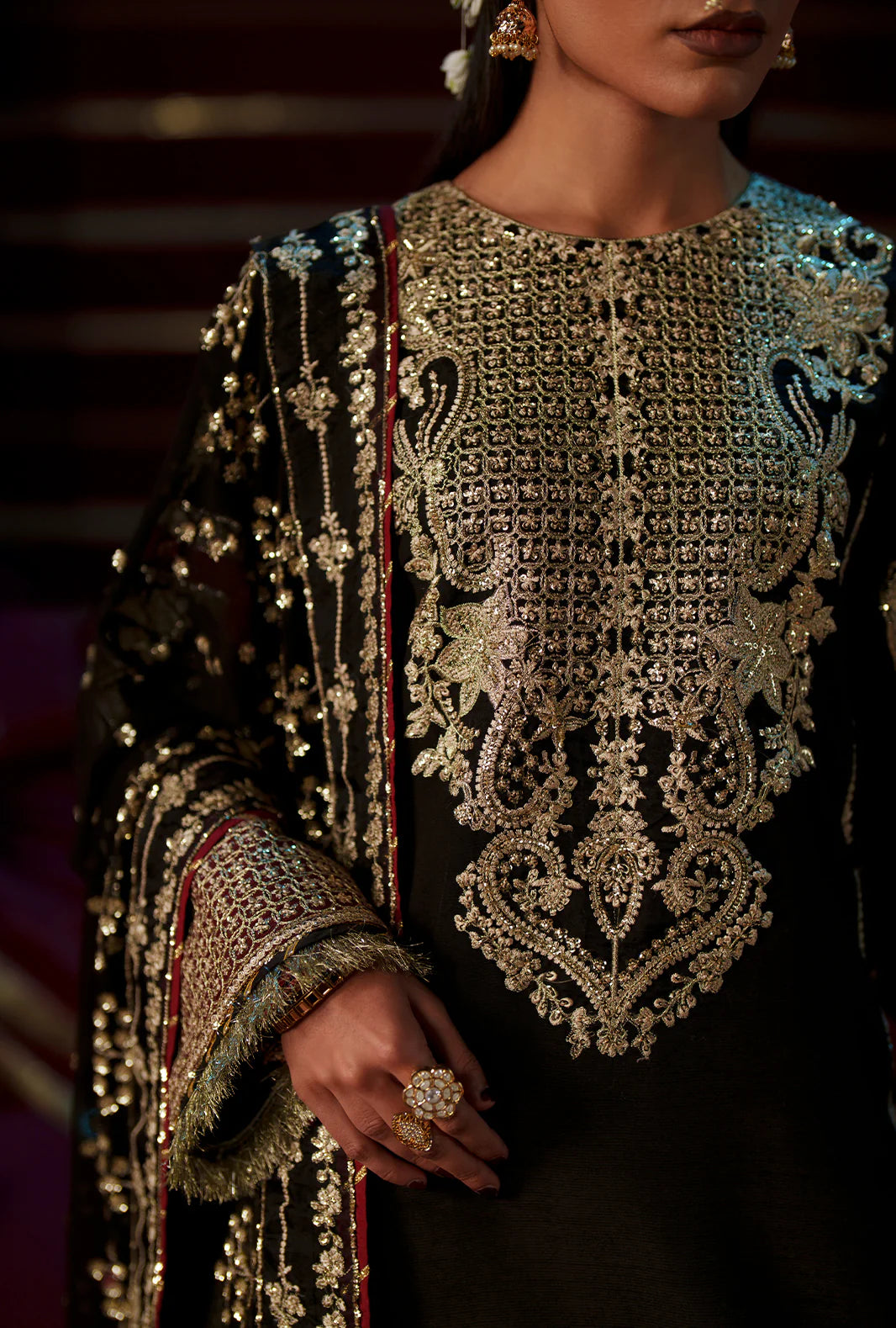 - Sequin embroidered organza sleeves motives