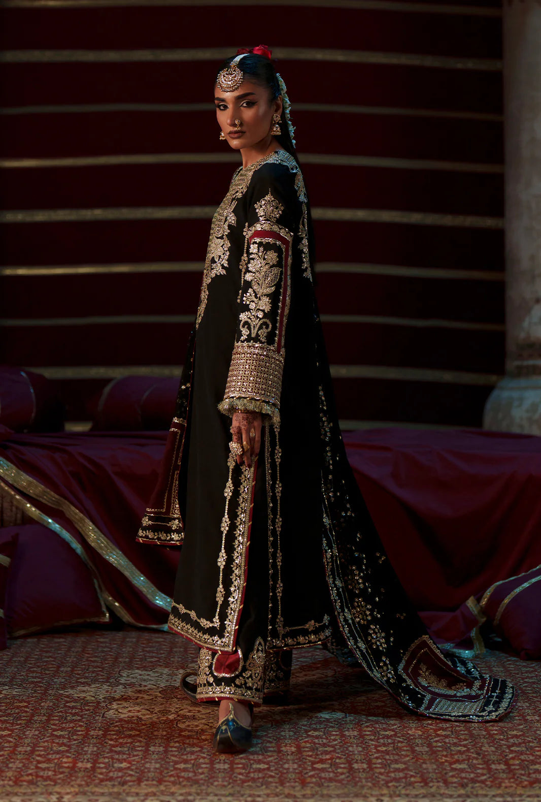 - Sequin embroidered rawsilk dupatta pallu