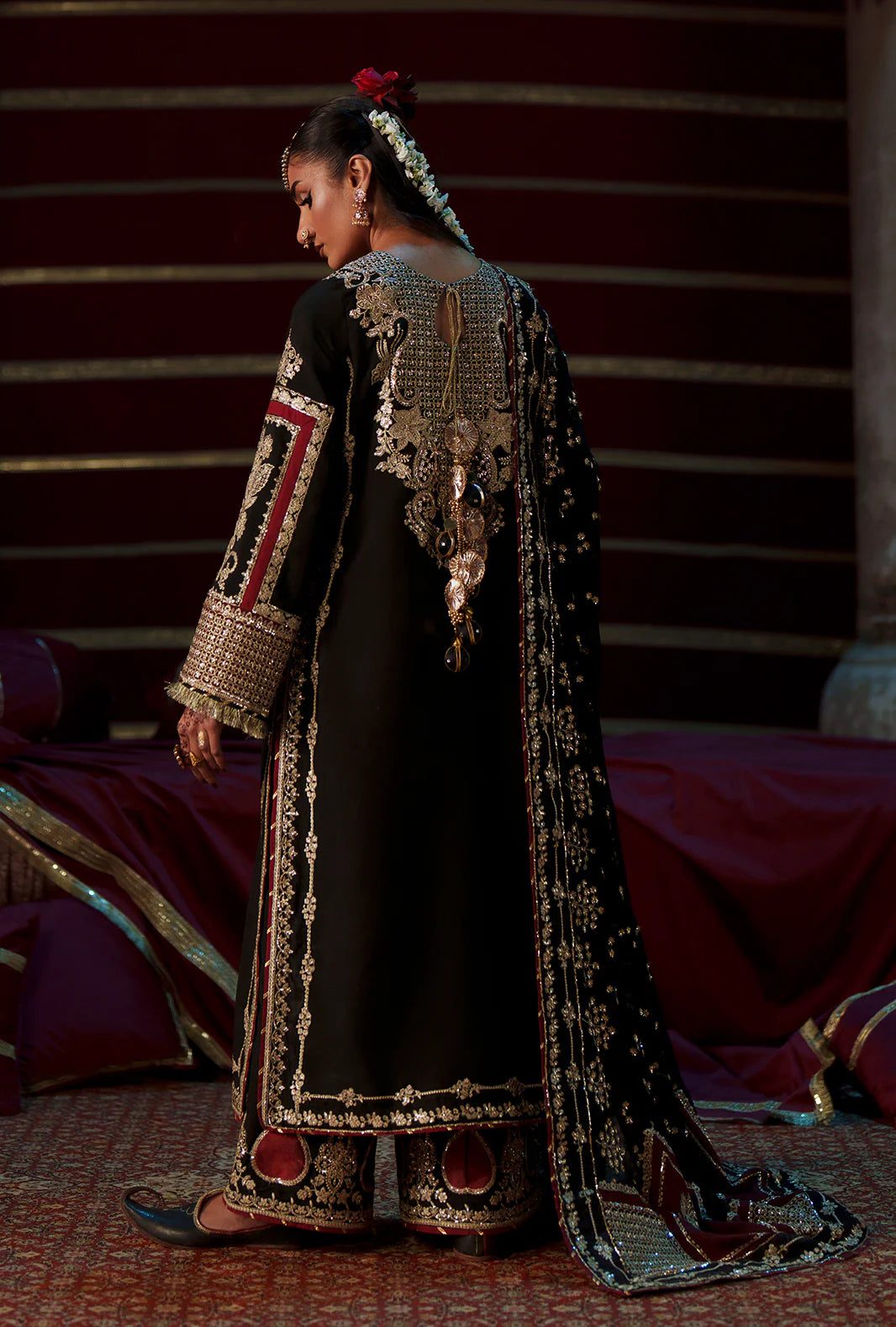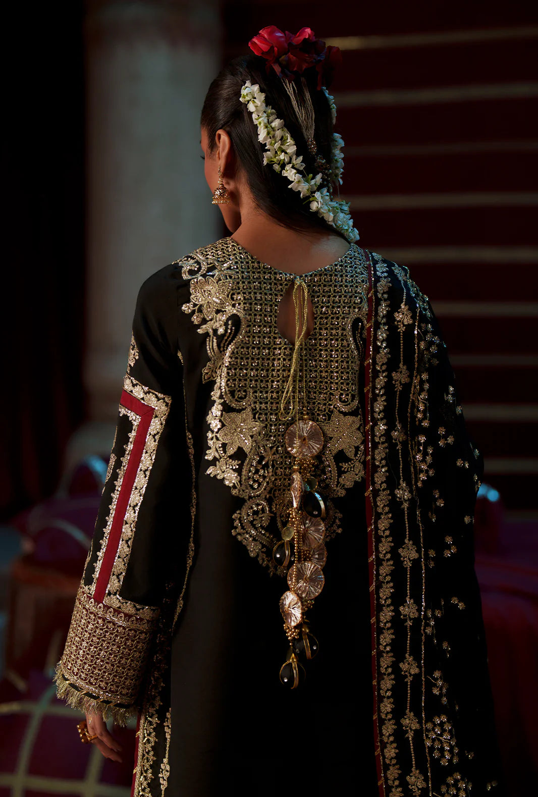- Sequin embroidered organza back neckline