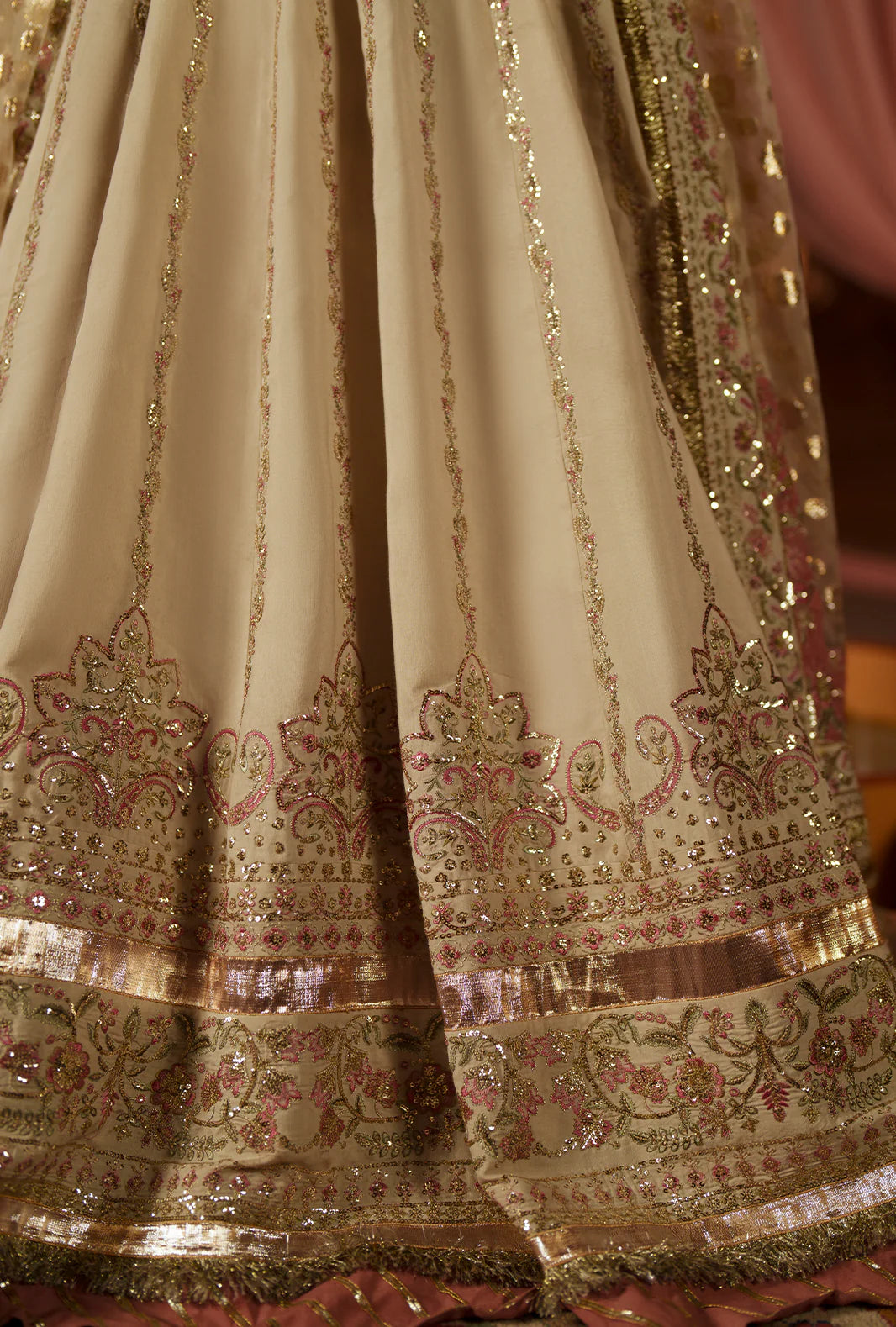 - Sequin embroidered silk flare border