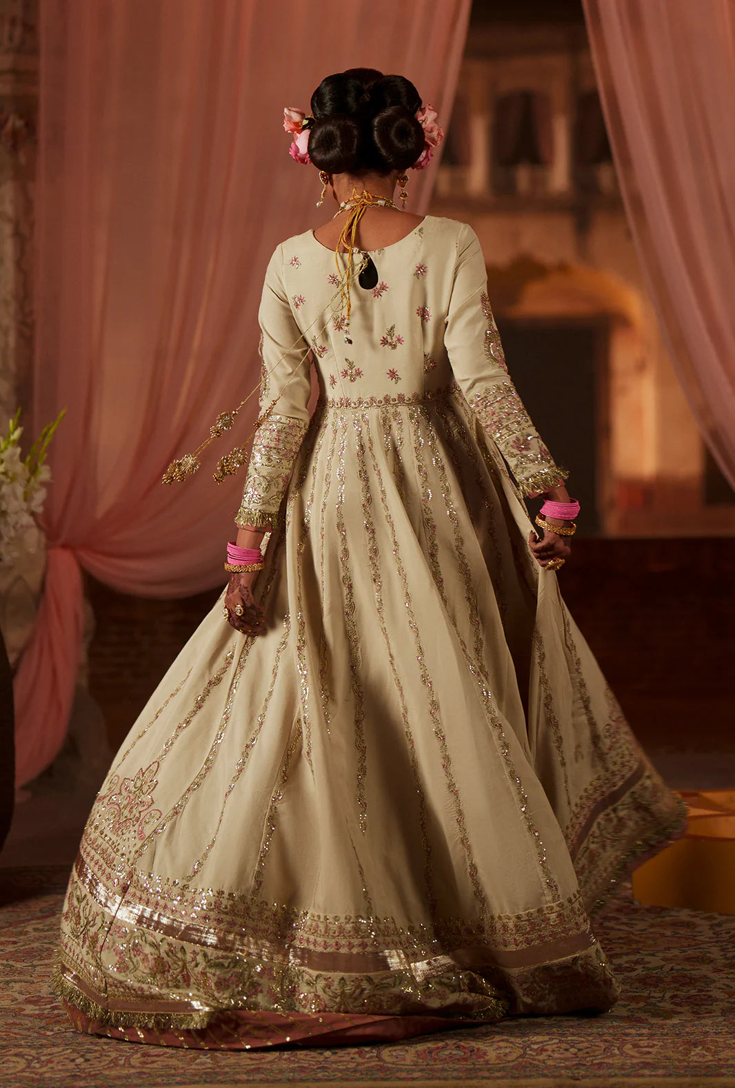 - Sequin embroidered rawsilk back yoke
