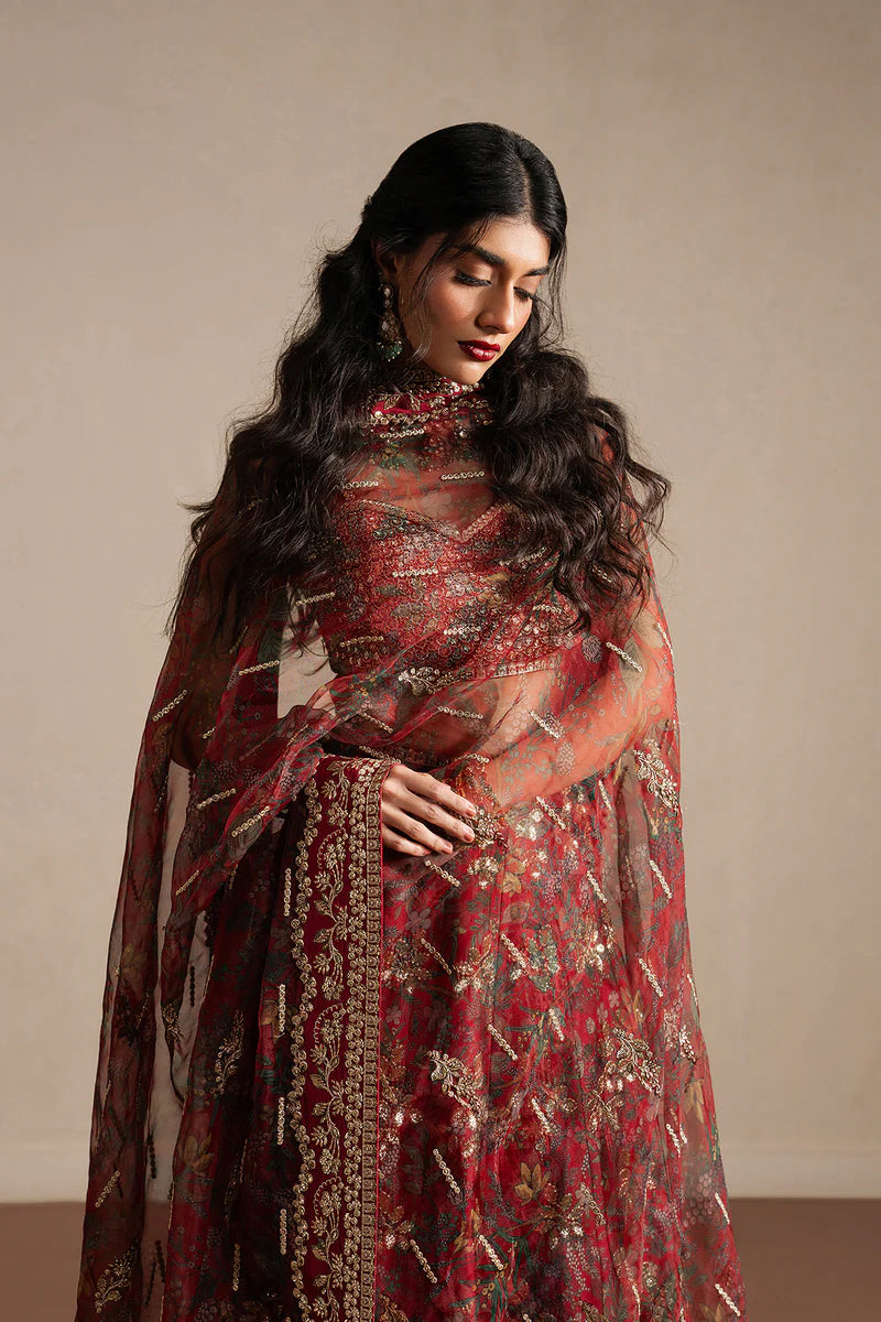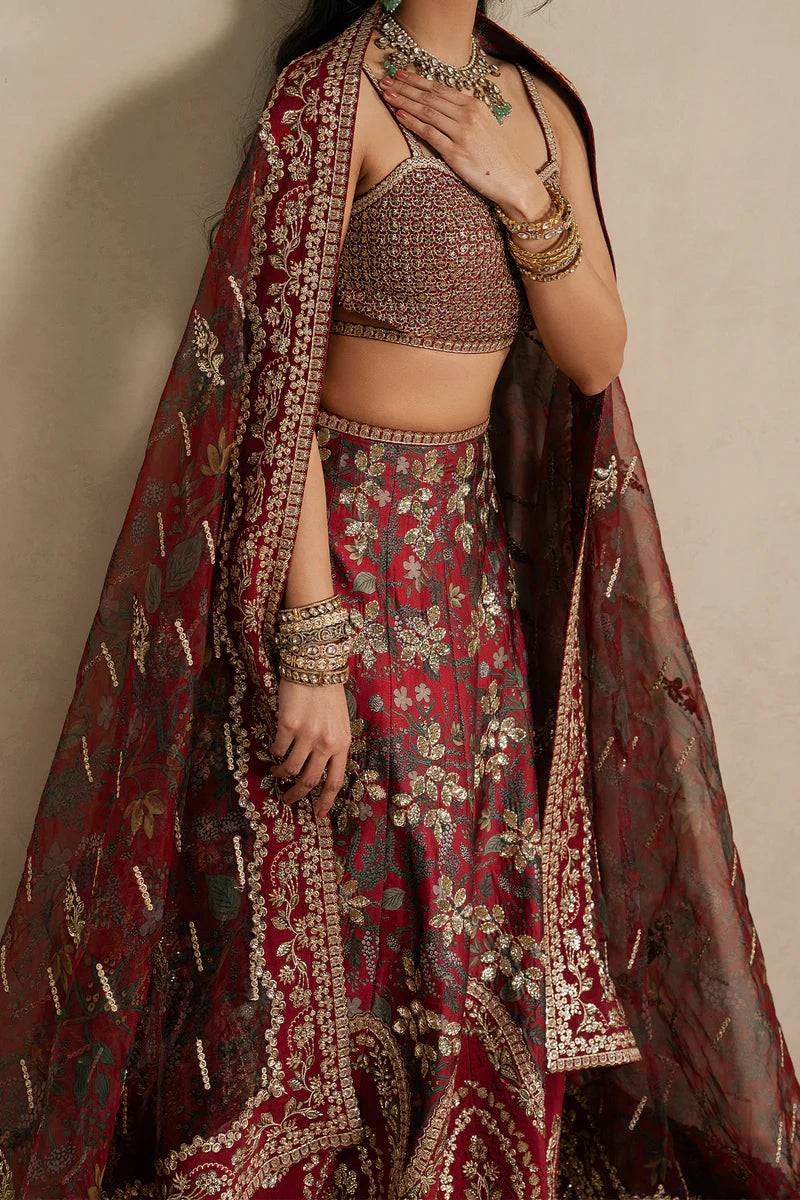 Printed Maroon Organza Digital Printed Embroidery Dupatta 2.60 M